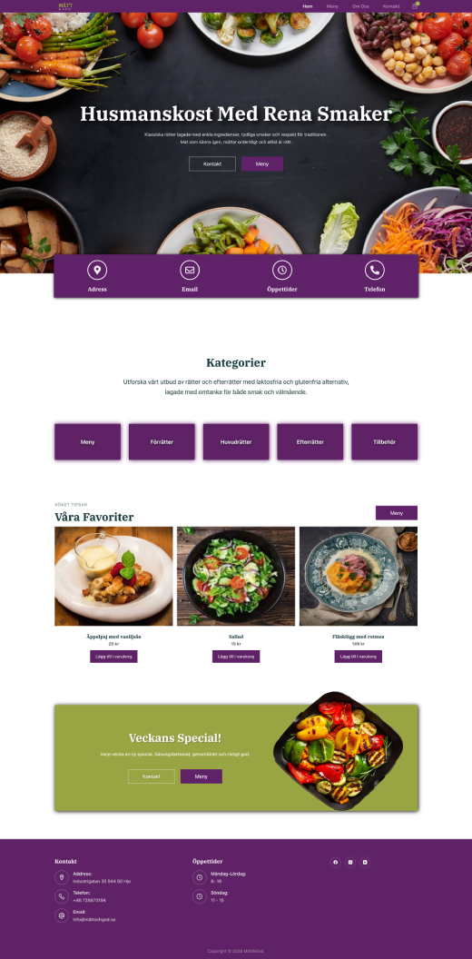 Fokus låg på att skapa en tydlig och lättnavigerad webbplats där flödet från meny till beställning känns enkelt och naturligt. Uttrycket togs fram för att spegla företagets värden – husmanskost med rena smaker – och låta maten stå i centrum.